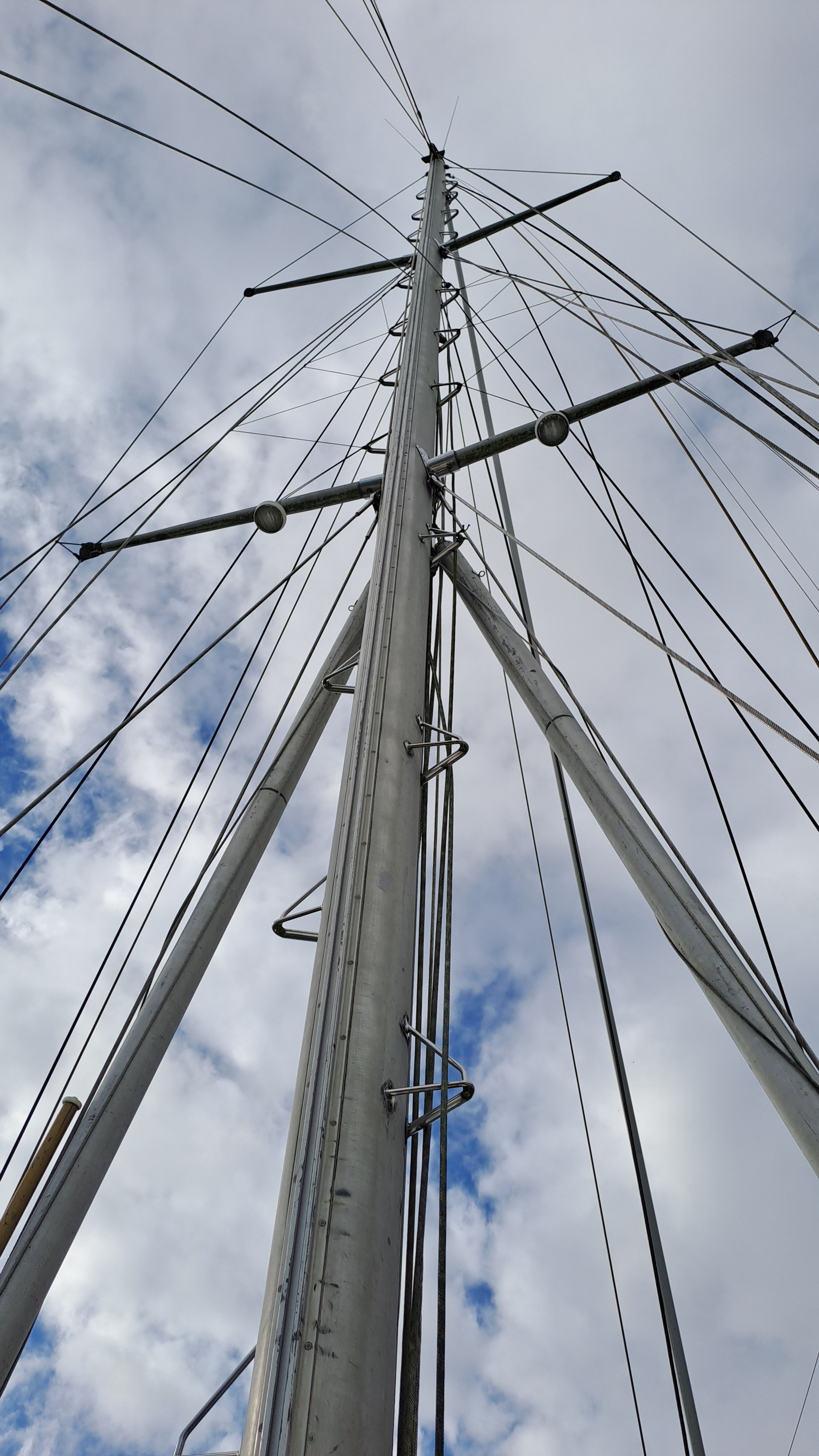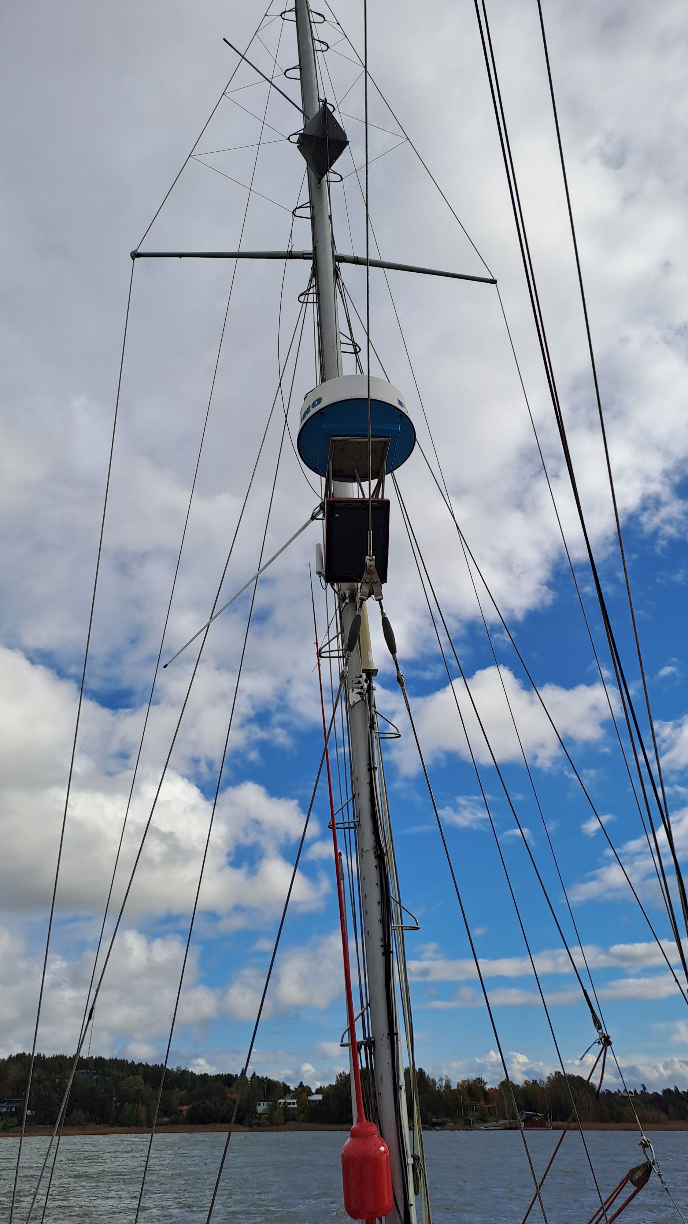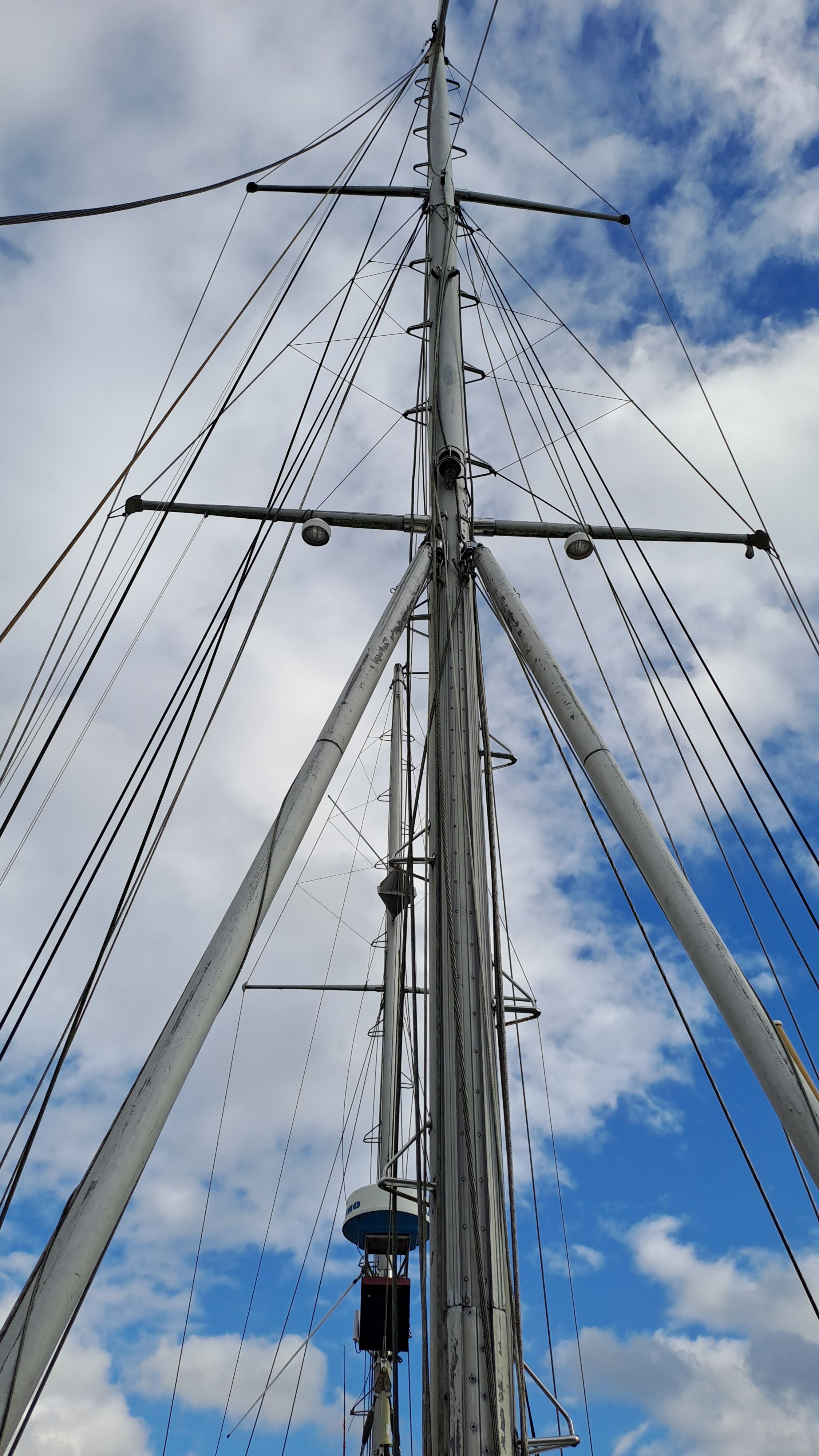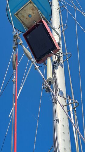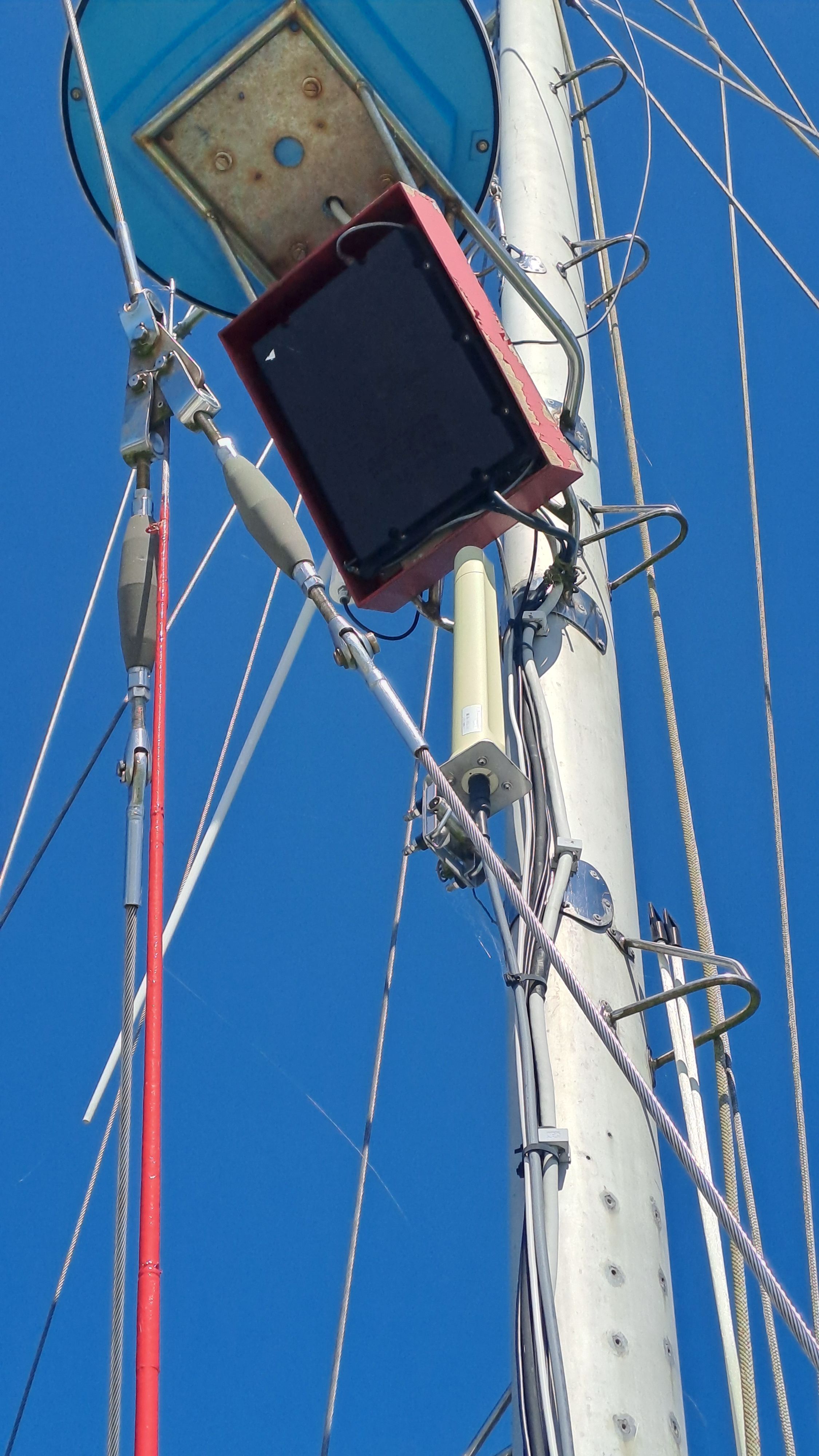 The steel hull acts as a Faraday cage, and the mizzen mast carries a high-quality omni antenna with excellent cabling and a router.