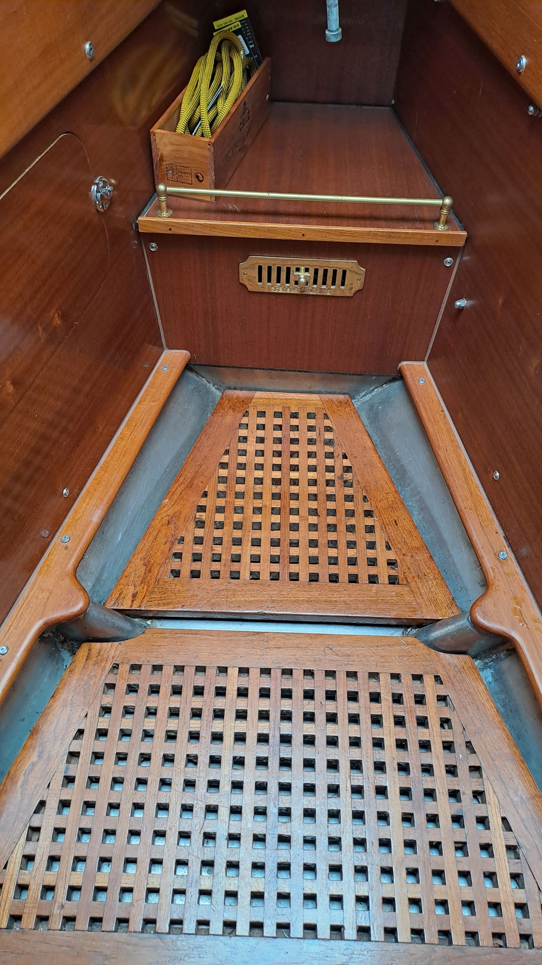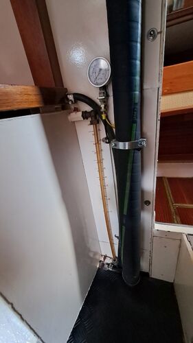 Tanks There are three fuel tanks. Below, around the propeller shaft, there is a tank of about 50 liters. This tank has a manhole and a drain plug, making it easy to clean when the boat is on dry land. On the port side, there is a 250-liter tank that “feeds” into the lower tank. It also has a large manhole and can be thoroughly cleaned by hand. The tank features a “sight glass” that allows the fuel level to be checked. On the starboard side, there is a 200-liter tank with a similar sight glass to check the fuel level. Switching between tanks is easy with a single lever.