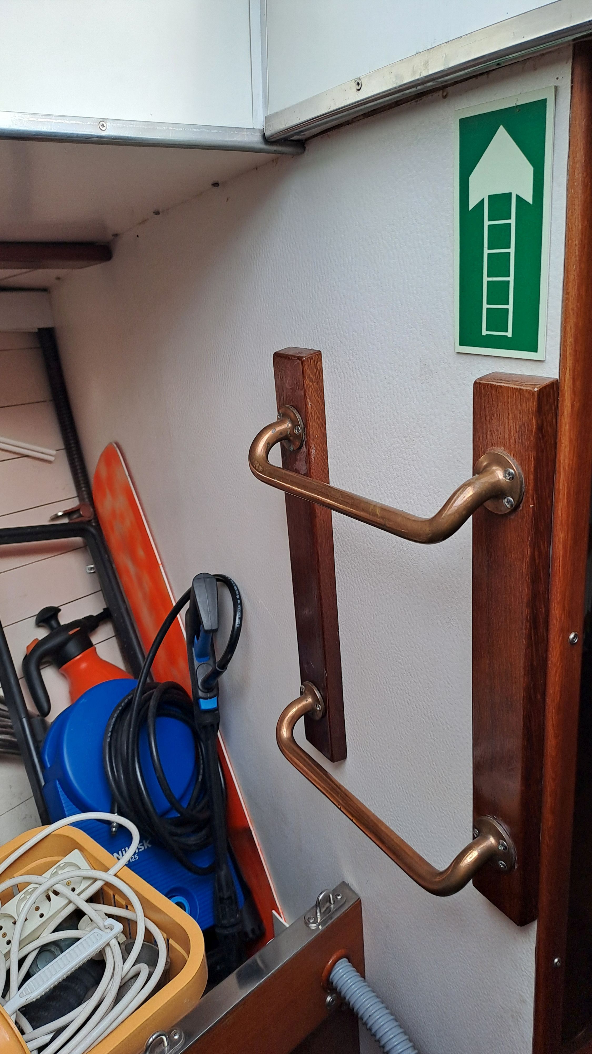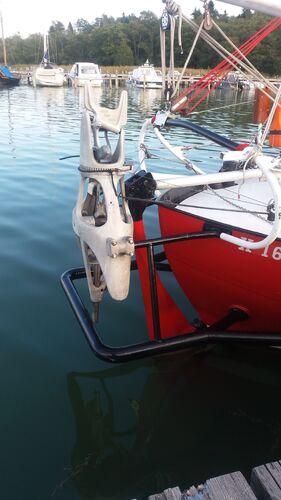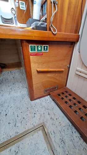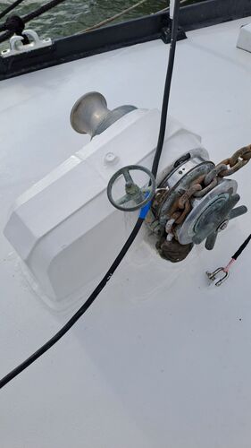 In the saloon bilge, there is a Luke-brand collapsible Admiralty anchor, which proved effective when the boat overwintered on rocky ground in Svalbard. The windlass can be operated from the deck via a control cable.