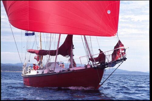 The French sailing legend Bernard Moitessier (1925–1994) gained considerable publicity after writing Vagabond des Mers du Sud, in which he shared several of his views on ocean sailing theory. Jean Fricaud, a shipyard owner experienced in using steel as a boatbuilding material, contacted Moitessier and offered to build him the “perfect” boat, charging only for the cost of the steel and welding rods. Having lost his previous boat in the Caribbean, Moitessier was excited by the offer—but he also wanted to be involved in the project.
