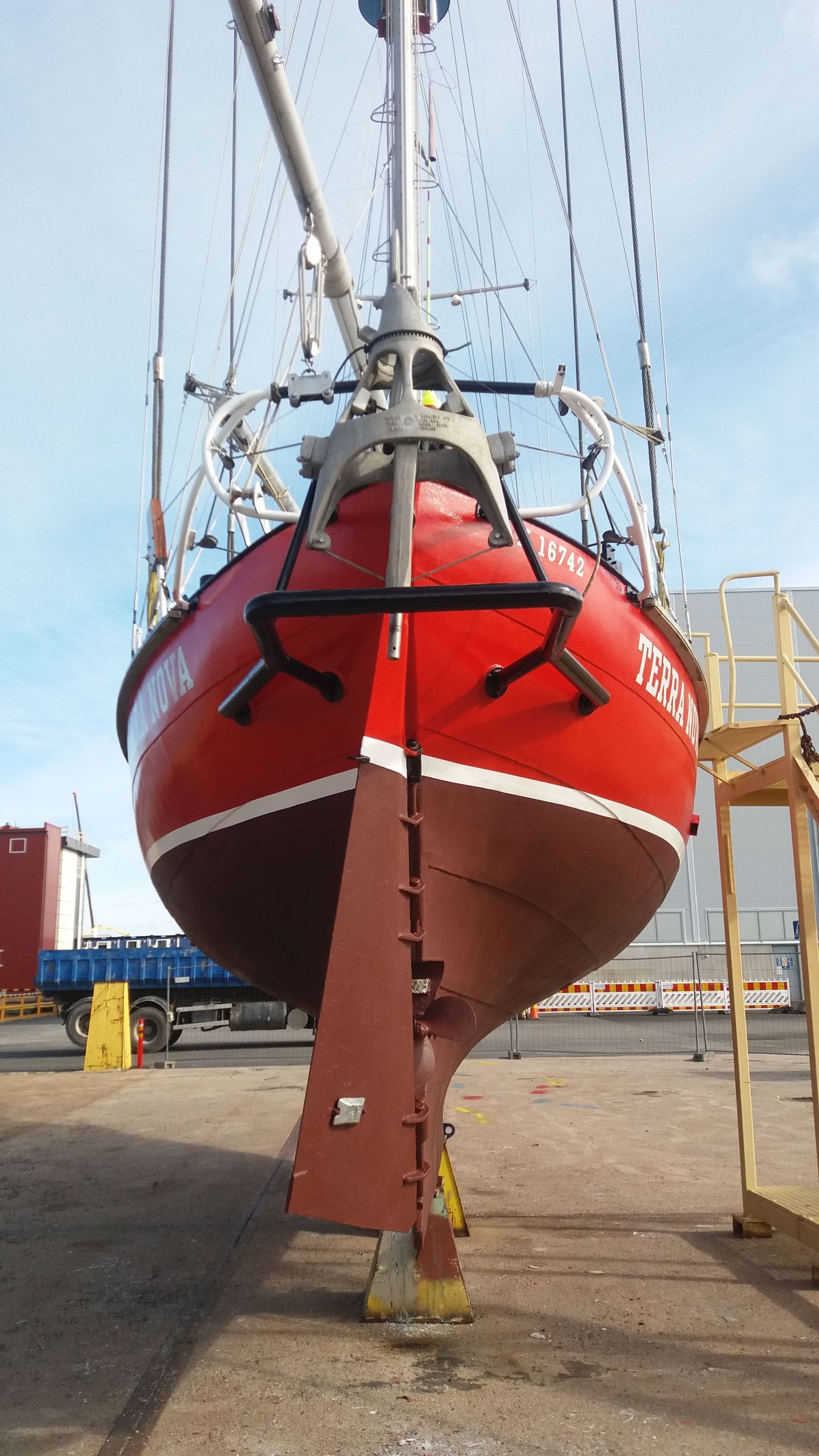 The furling headsail was made by Facnor. The rigging is completely original and was manufactured by Proctor. According to the previous owner, the rigging was designed for a 50-foot boat. Bernard Moitessier visited Tahiti on this boat, and before his fourth glass of wine, he praised Terra Nova’s rigging highly, saying, “If only I had had one like this.”