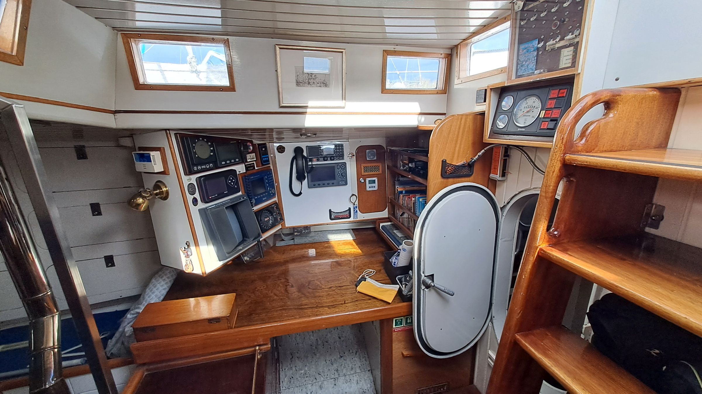 A recording barometer and traditional echo sounders are on board. A dedicated space for a computer screen has been left at the navigation station.