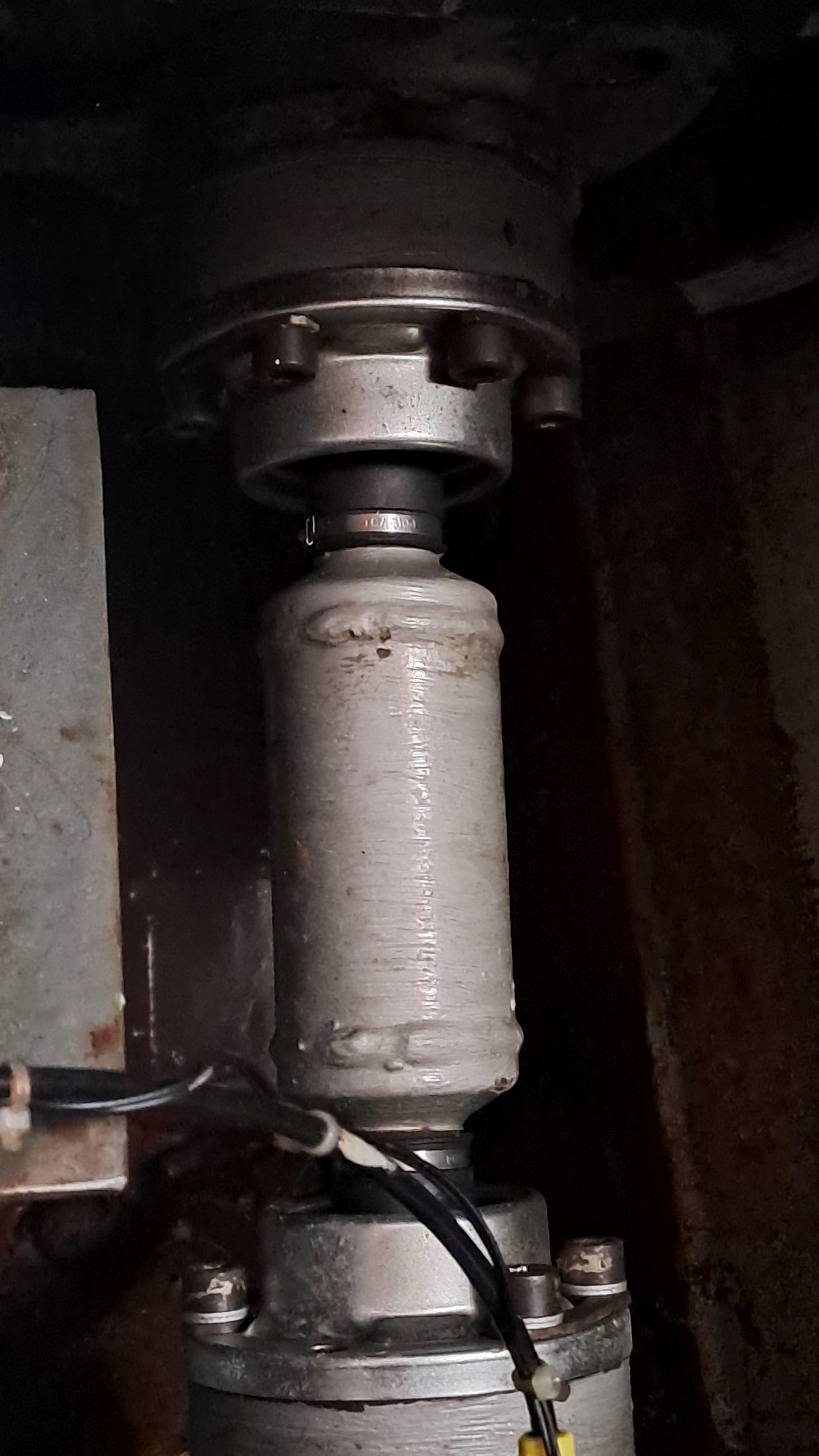 The gearbox is made by ZN, and its design allows free rotation while sailing. The shaft has a Scatra universal joint, with wear parts replaced less than a hundred hours ago. The manufacturer of the thrust bearing is unknown, and it likely has never needed to be opened. However, there are drawings available.