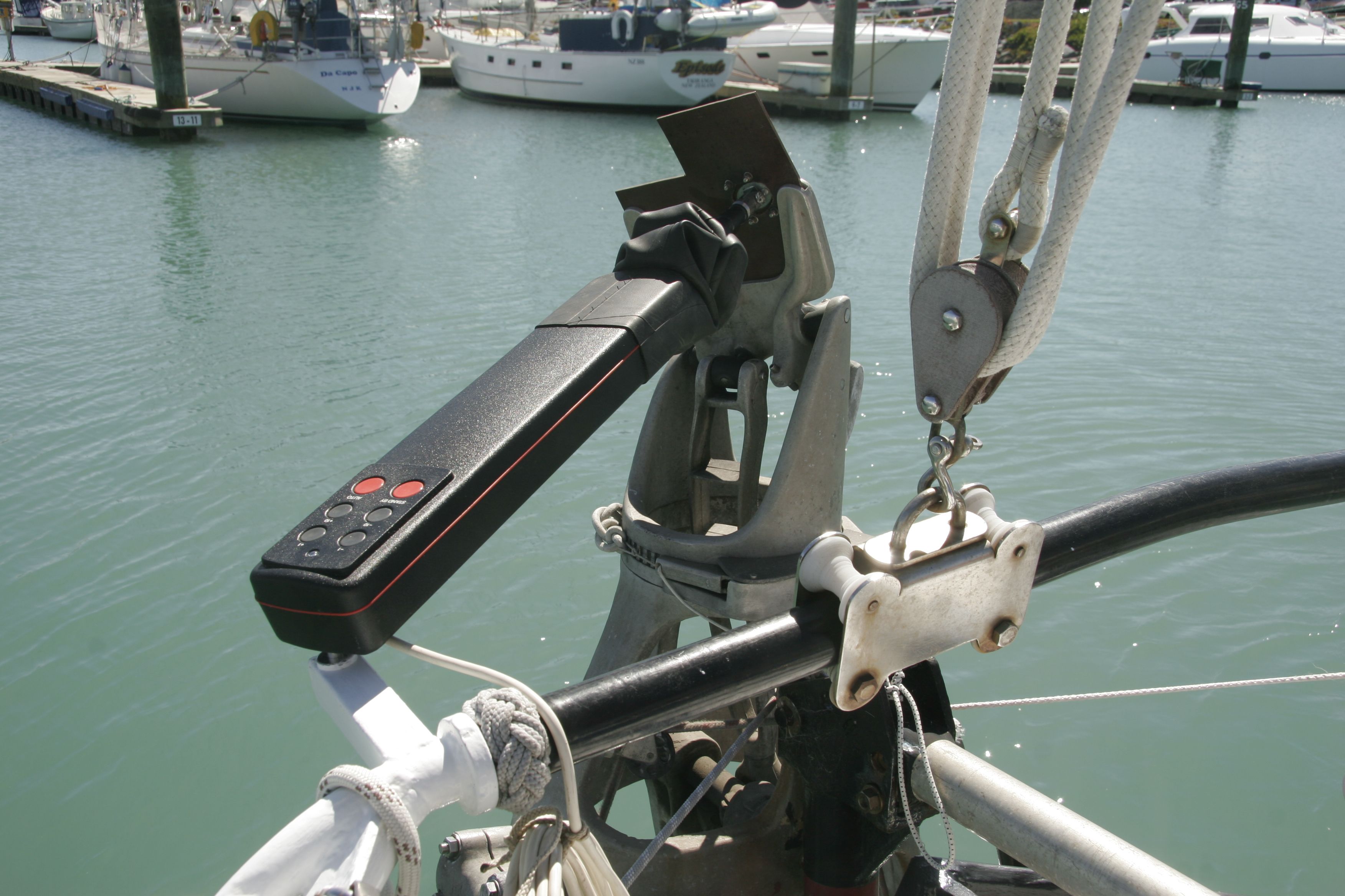 Terra Nova comes with all the spare “wear parts,” and if more are needed, a machinist can produce them at a significantly lower cost. It's also worth noting that the wind vane is very well protected from harbour collisions (and from other yachts).