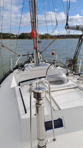 All sails are new North Sails (Niiniranta), and the specifications ordered were for ocean sailing at high latitudes. The sails have been stored in a warm place during the winters. The boat also comes with the old sails, of which practically only the spinnaker and storm sail are still useful.